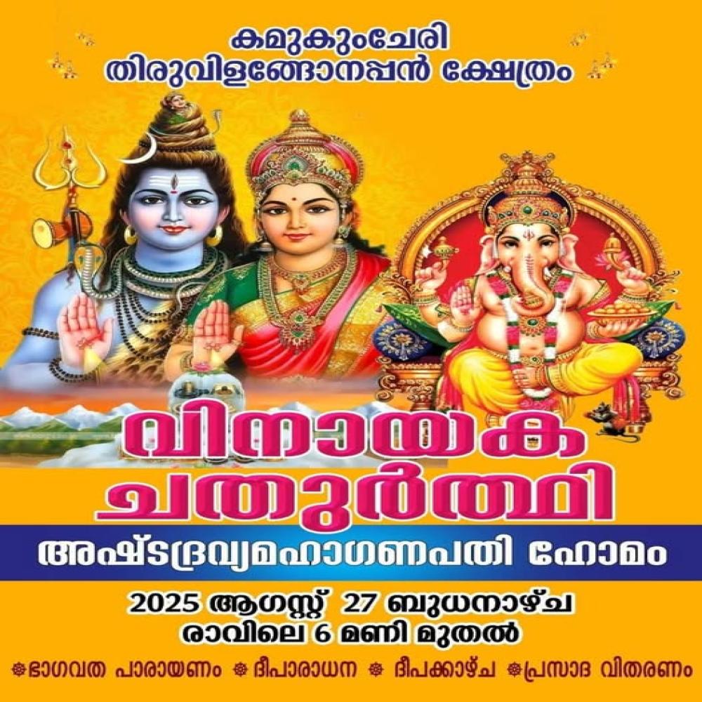വിനായക ചതുർത്ഥി കമുകുംചേരി തിരുവിളങ്ങോനപ്പൻ ക്ഷേത്രം Kamukumchery Thiruvilangonappan Temple Vinayaka Chthurthi