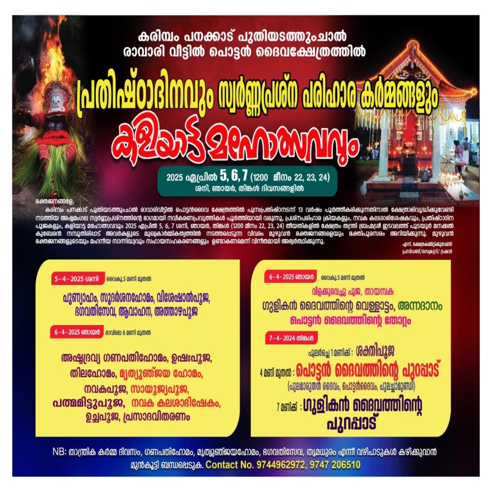 Karimbam Panakkad Puthiyadathumchal Raavari Veetil Pottan Daiva Kshethram Kaliyatta Mahotsavam